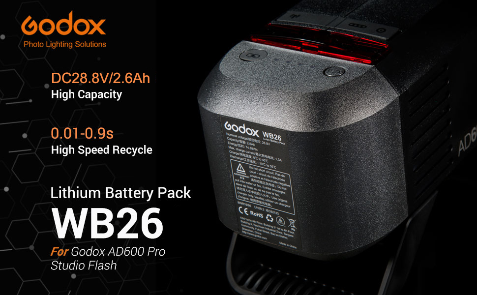 - Batería Godox WB-26 Diseño para AD600Pro AD600 ProII: batería de litio Godox WB26 compatible con Godox AD600 Pro AD600Pro II flash monolight