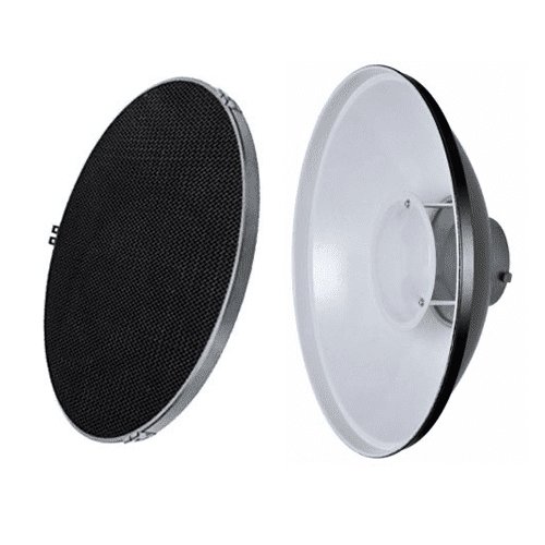 - Reflector Blanco: El interior blanco del beauty dish ofrece una luz aún más suave y difusa que el de color plateado, ideal para retratos y fotografías de moda.