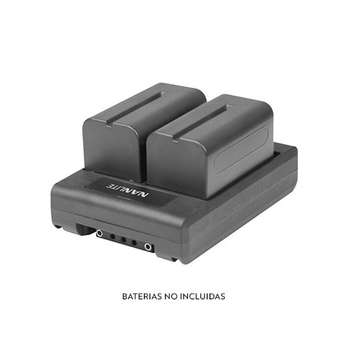 El adaptador de batería de Nanlite le permite usar dos baterías NP-F en dispositivos que admiten una batería de montaje en V. Tiene un soporte en V en un lado y dos ranuras para batería de la serie L en el otro.