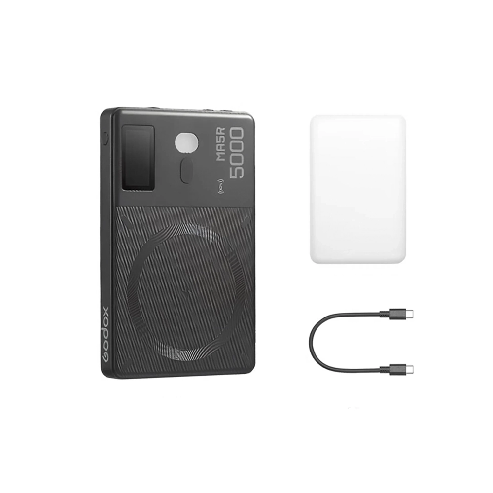 El LED Godox MA5R RGB no solo proporciona una potente fuente de luz, sino que también funciona como un banco de energía portátil con carga magnética, compatible con MagSafe y Qi2. Su batería interna de 4.900 mAh (18,13 Wh) garantiza hasta 220 minutos de funcionamiento continuo con la luz encendida al 100 % y puede utilizarse para cargar dispositivos móviles como smartphones, cámaras compactas, micrófonos inalámbricos o accesorios fotográficos.
