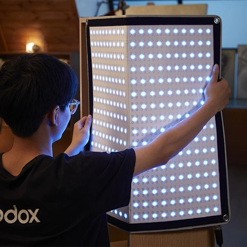 El cuerpo de luz plegable ultradelgado ofrece una iluminación versátil y eficiente adaptada a entornos exigentes. Su forma flexible se adapta a varias superficies (curvas, planas o irregulares), lo que permite ángulos de luz óptimos en condiciones de disparo complejas.