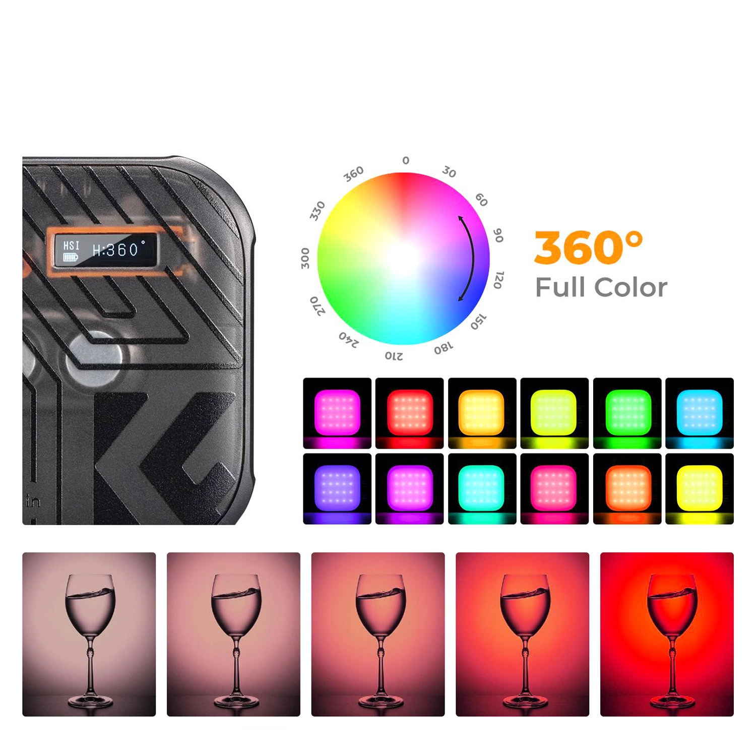 Esta luz permite ajustar la temperatura de color entre 2500K y 9900K, adaptándose a diversas condiciones de iluminación y necesidades creativas. Además, cuenta con un modo HSI que permite ajustar el tono de 0-360°, ofreciendo una amplia gama de colores para tus proyectos.