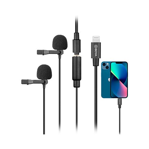 Micrófito Boya BY-M2D omnidireccional de doble cabeza para dispositivos iOS